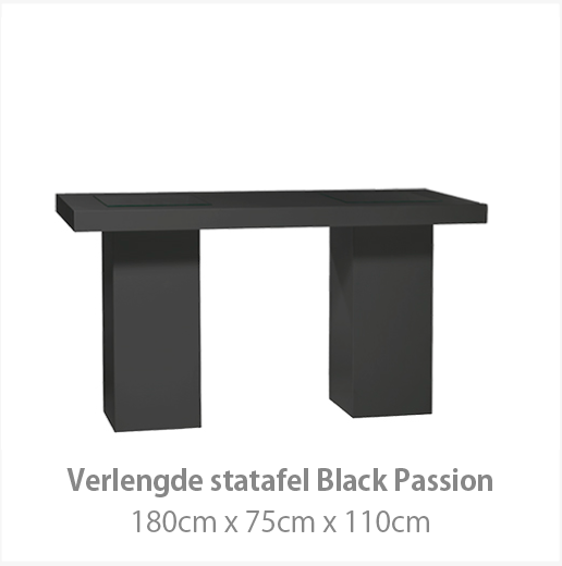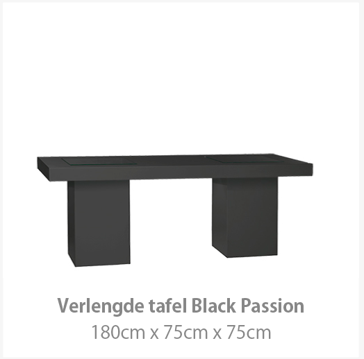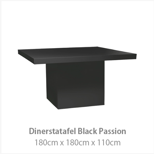 Kenmerkend voor de Black Passion interieurstijl is de luxueuze uitstraling. Het hoogglans zwarte meubilair zet de toon door zijn strakke vormen en sterke karakter. Dit concept vult elke ruimte met een sensationeel gevoel. De toevoeging van mysterieuze elementen, zoals grote vazen en unieke bloemstukken versterkt de beleving van deze lijn.