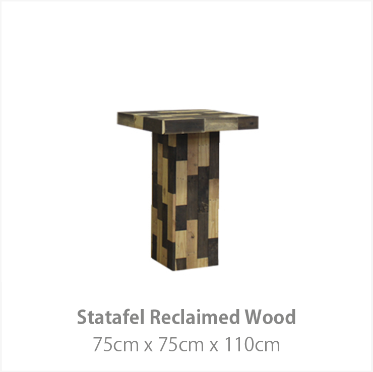 Het gebruik van verschillende kleurtinten zorgt voor een speelse twist. Wenst u een wat rustigere uitstraling in uw interieur dan kunnen de tafelpilaren van de Reclaimed Wood lijn, voorzien worden van witte of zwarte tafelbladen.