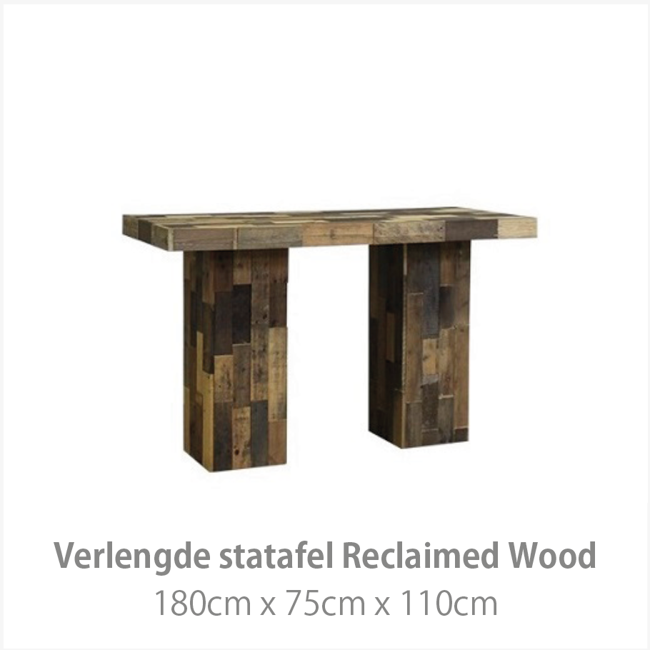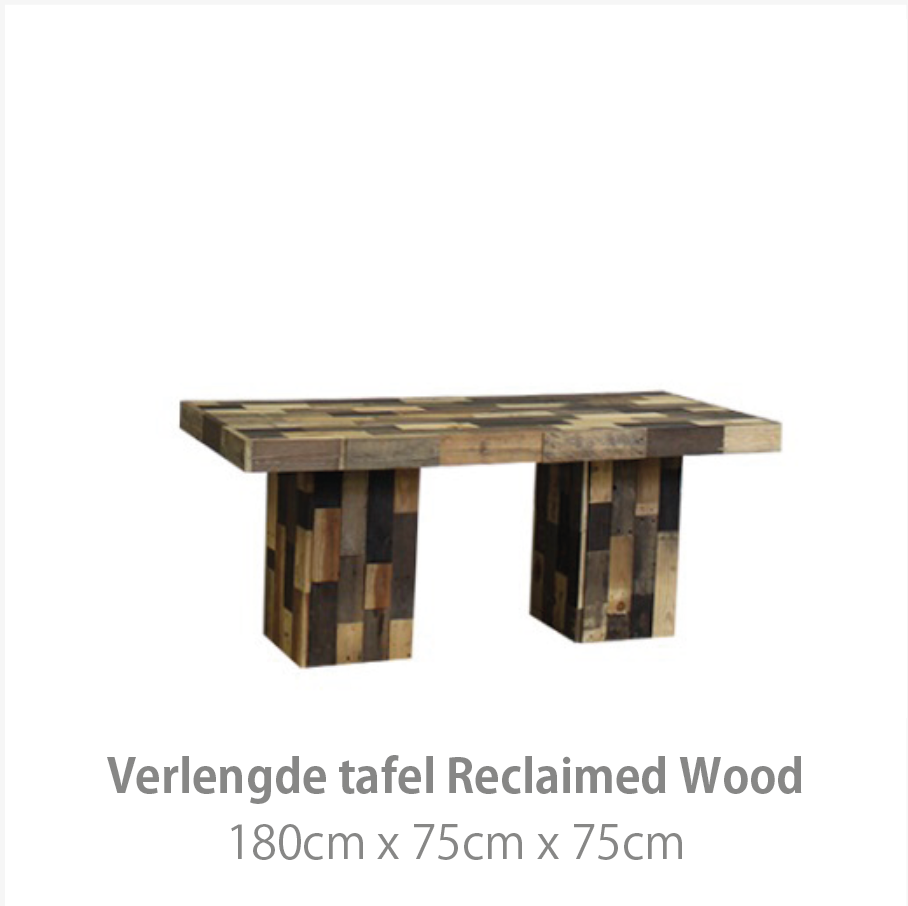 Wanneer u op zoek bent naar een maatschappelijk verantwoord interieur, dan is er geen eerlijker interieur dan de Reclaimed Wood collectie. Het meubilair is handgemaakt van sloophout, gewonnen uit oude vloerdelen. Hierdoor is elk meubelstuk uniek en heeft elk element een eigen en sterk karakter.