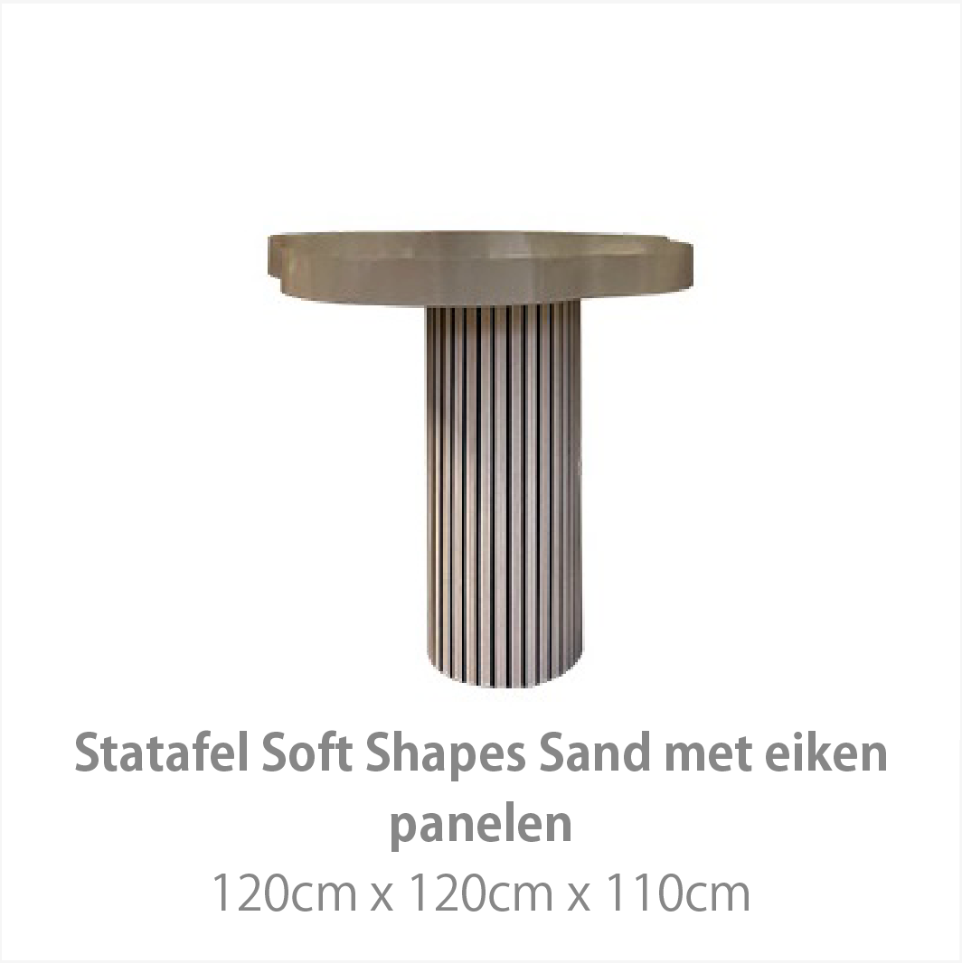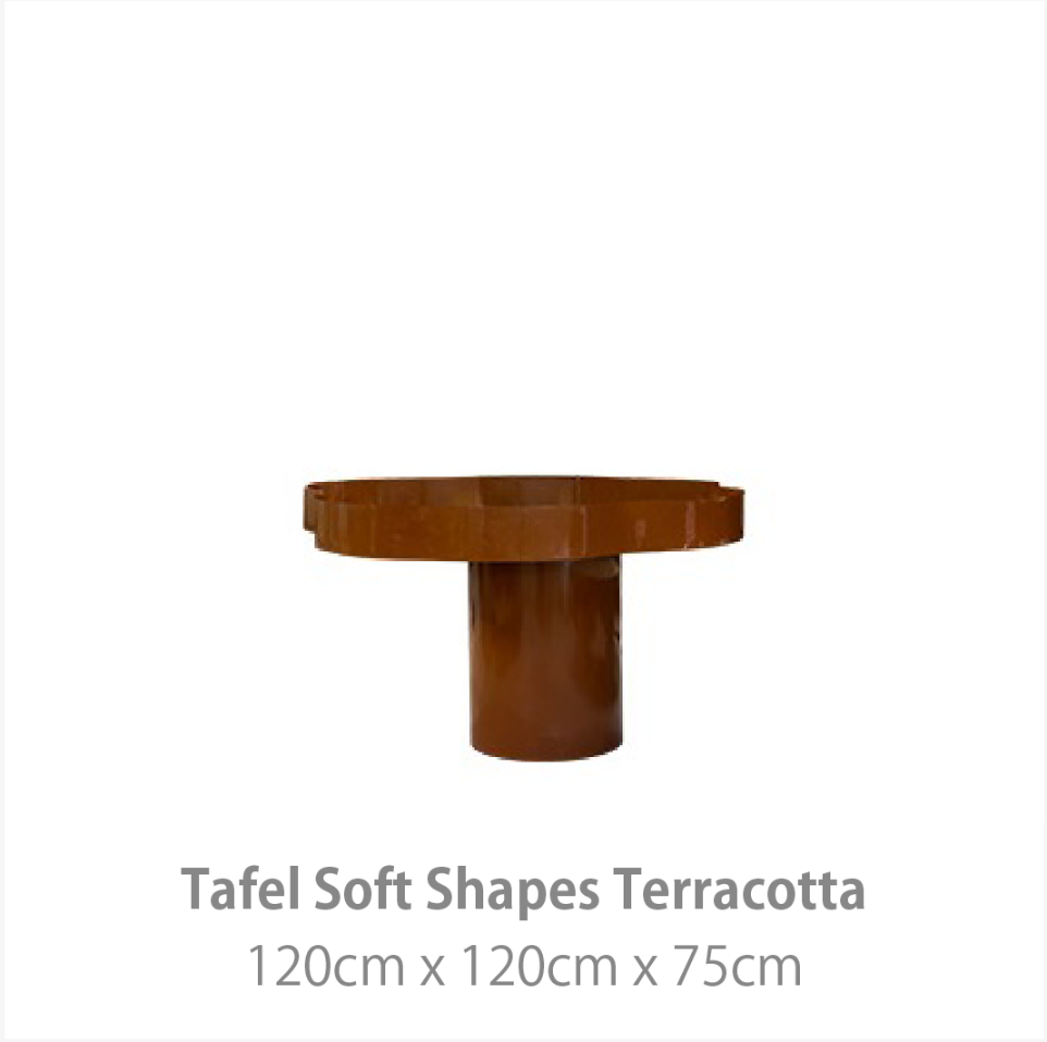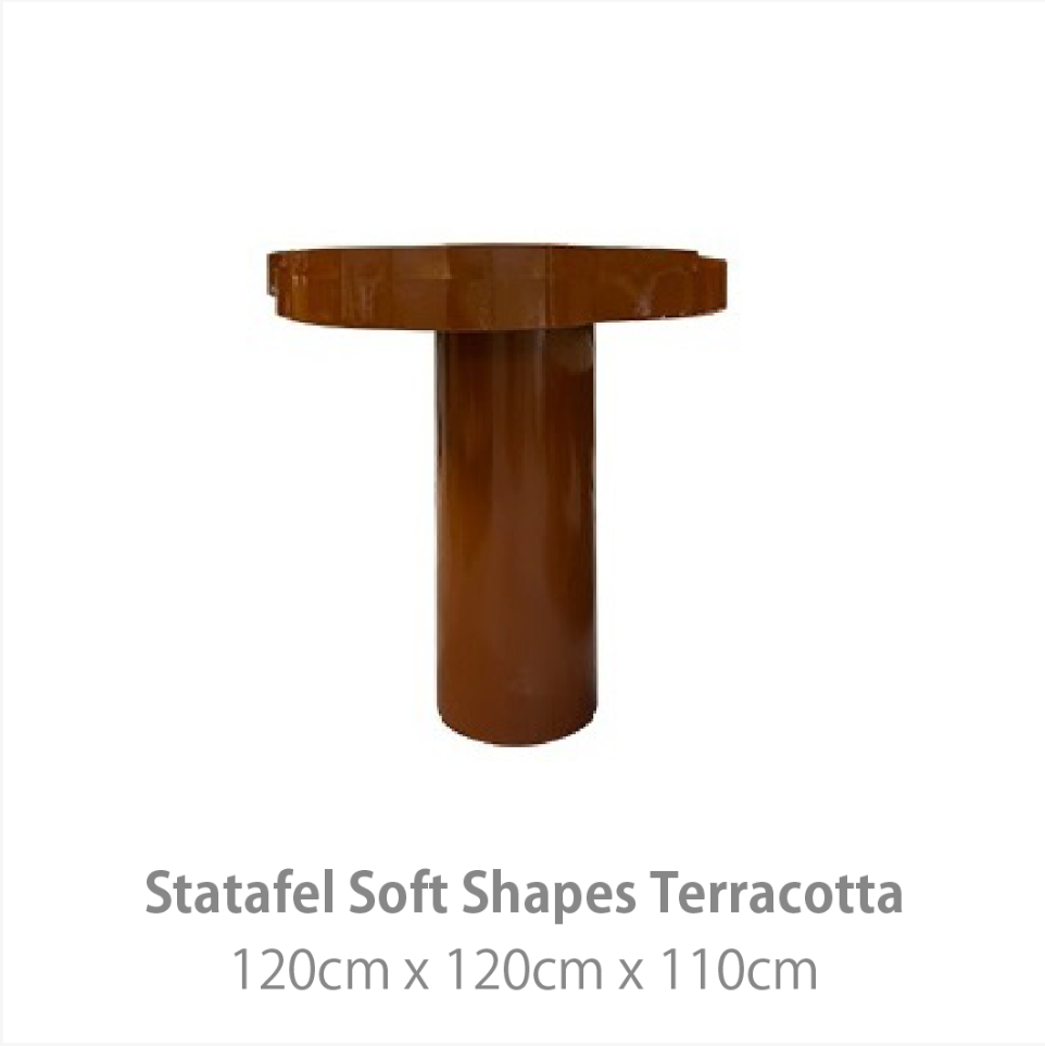 Zachte tinten, tactiele materialen en speelse accessoires maken deze collectie tot een harmonieus geheel. Denk aan keramieken objecten, gestileerde bloemstukken en decoratieve elementen geïnspireerd op de natuur. Door de vloeiende vormen en neutrale kleuren blijft de styling volledig naar wens in te vullen – van minimalistisch tot uitbundig. De Soft Shapes collectie is de ideale basis voor een sfeervol en stijlvol event met een uitnodigende uitstraling.