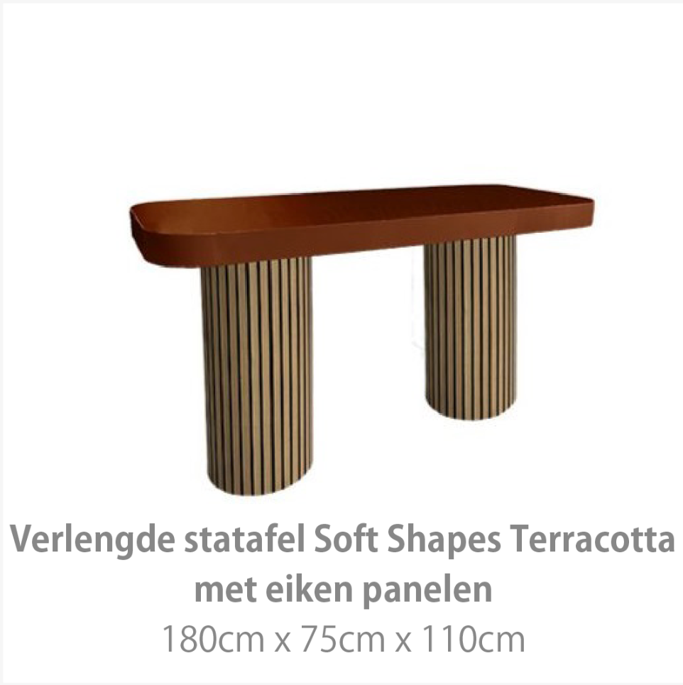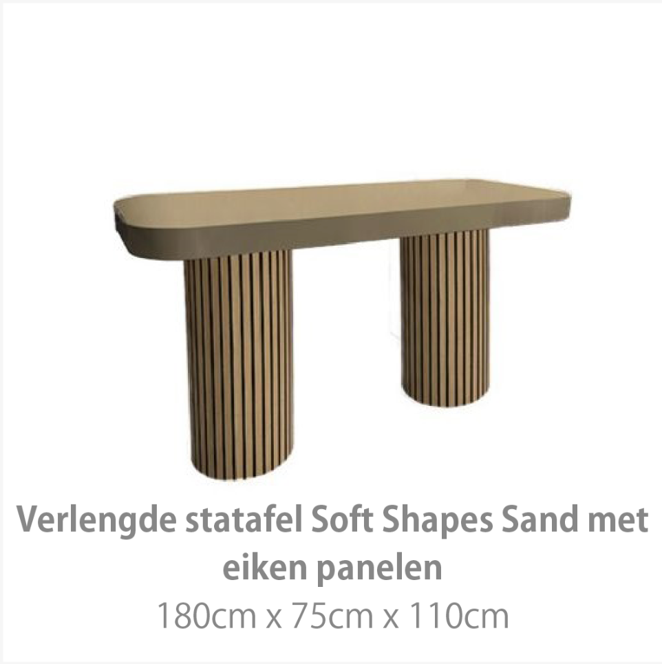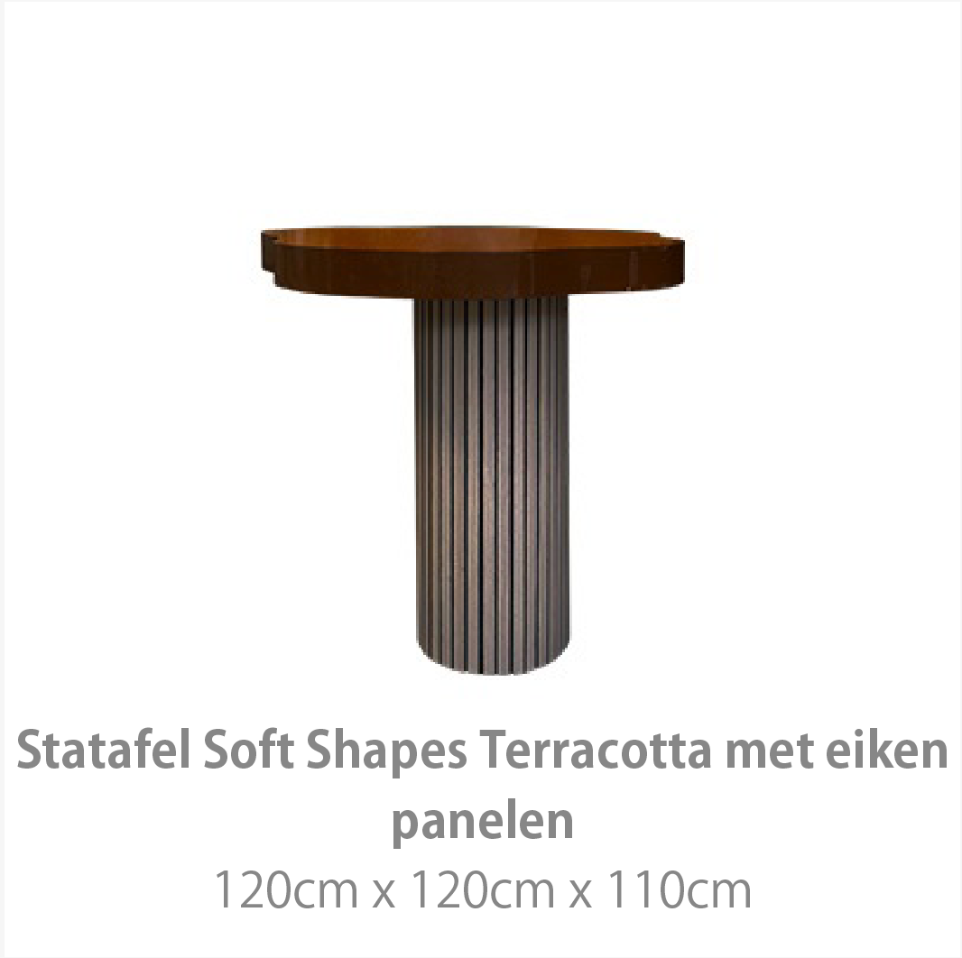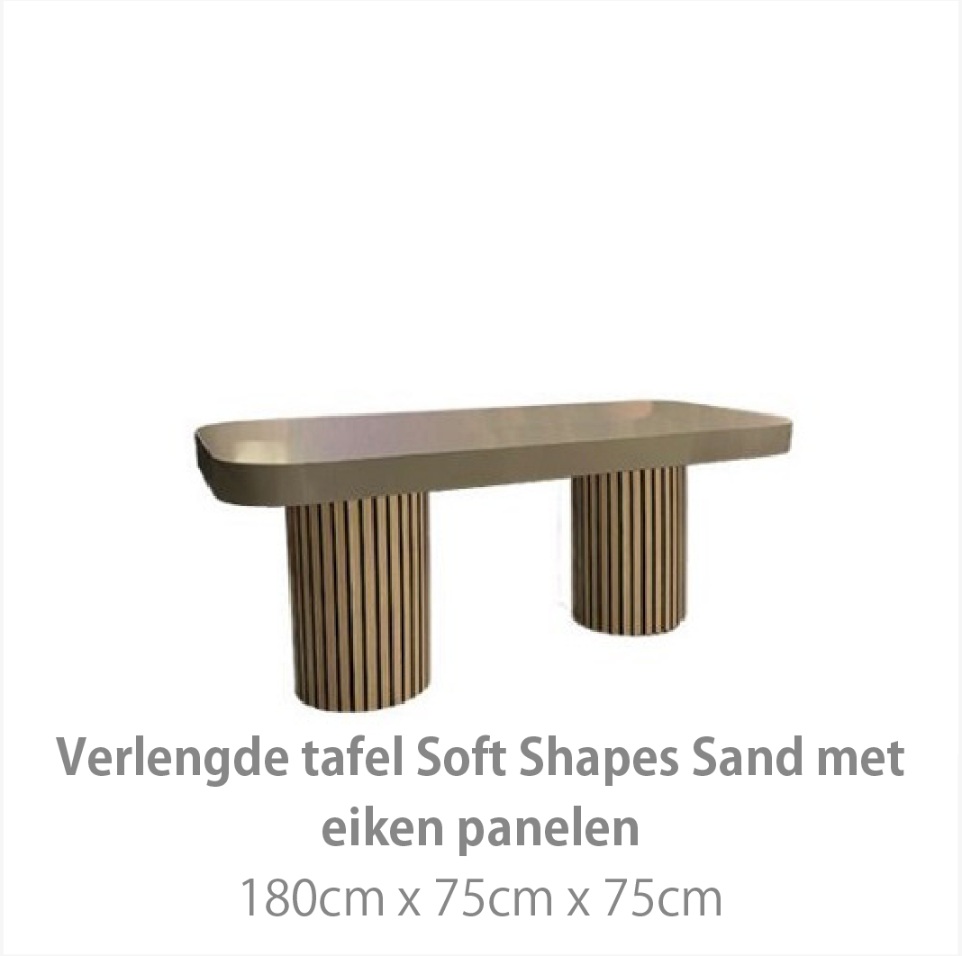 Zachte tinten, tactiele materialen en speelse accessoires maken deze collectie tot een harmonieus geheel. Denk aan keramieken objecten, gestileerde bloemstukken en decoratieve elementen geïnspireerd op de natuur. Door de vloeiende vormen en neutrale kleuren blijft de styling volledig naar wens in te vullen – van minimalistisch tot uitbundig. De Soft Shapes collectie is de ideale basis voor een sfeervol en stijlvol event met een uitnodigende uitstraling.