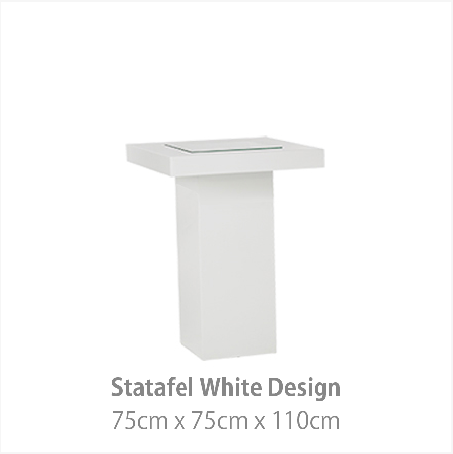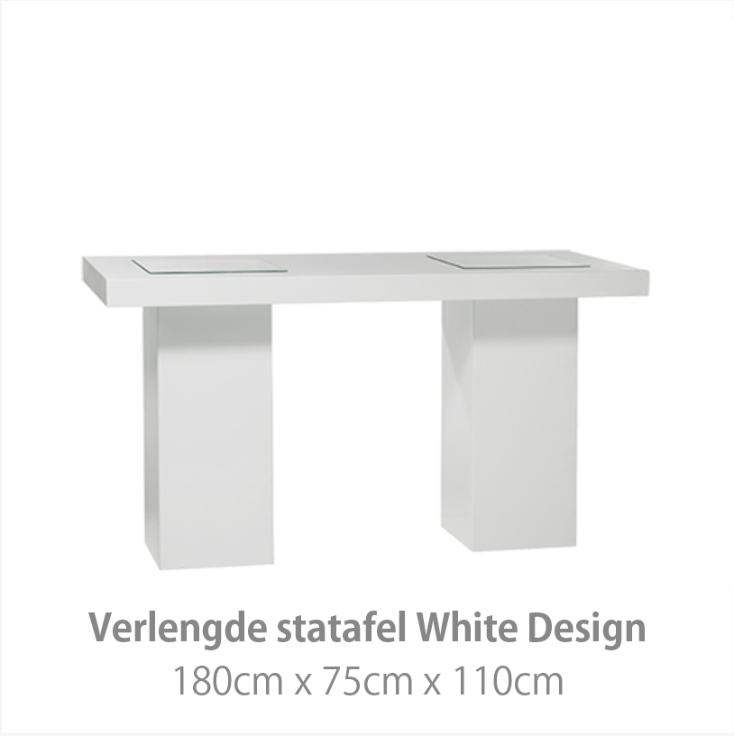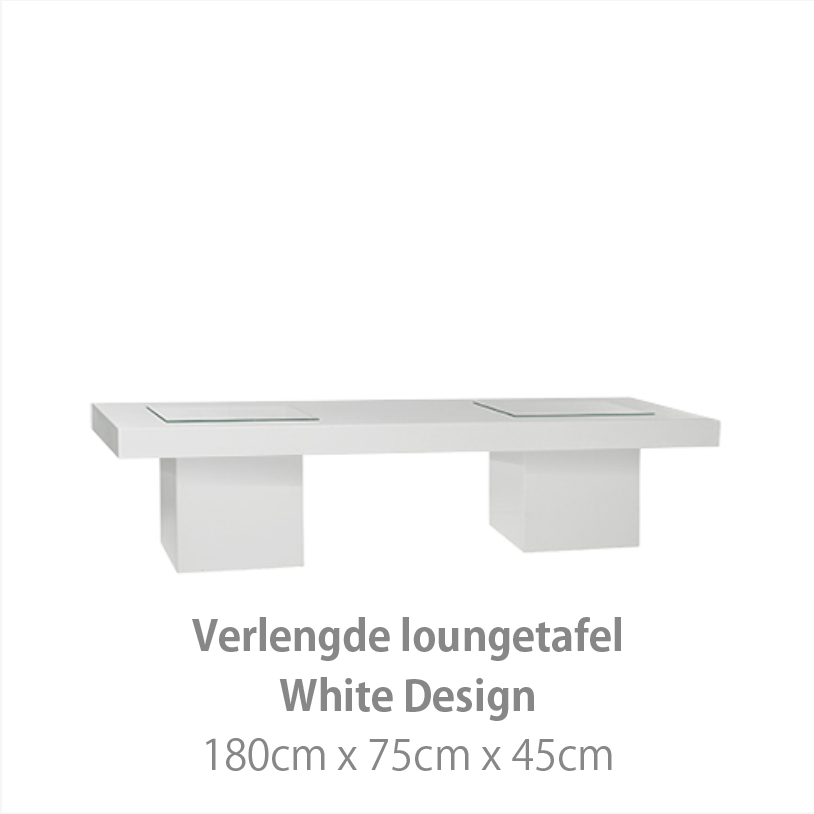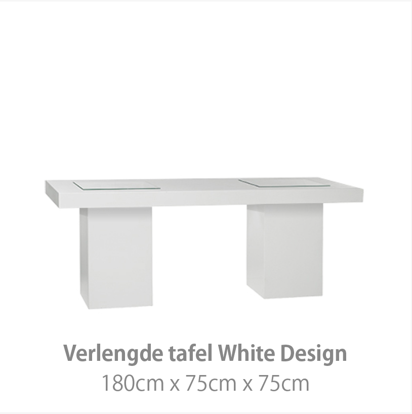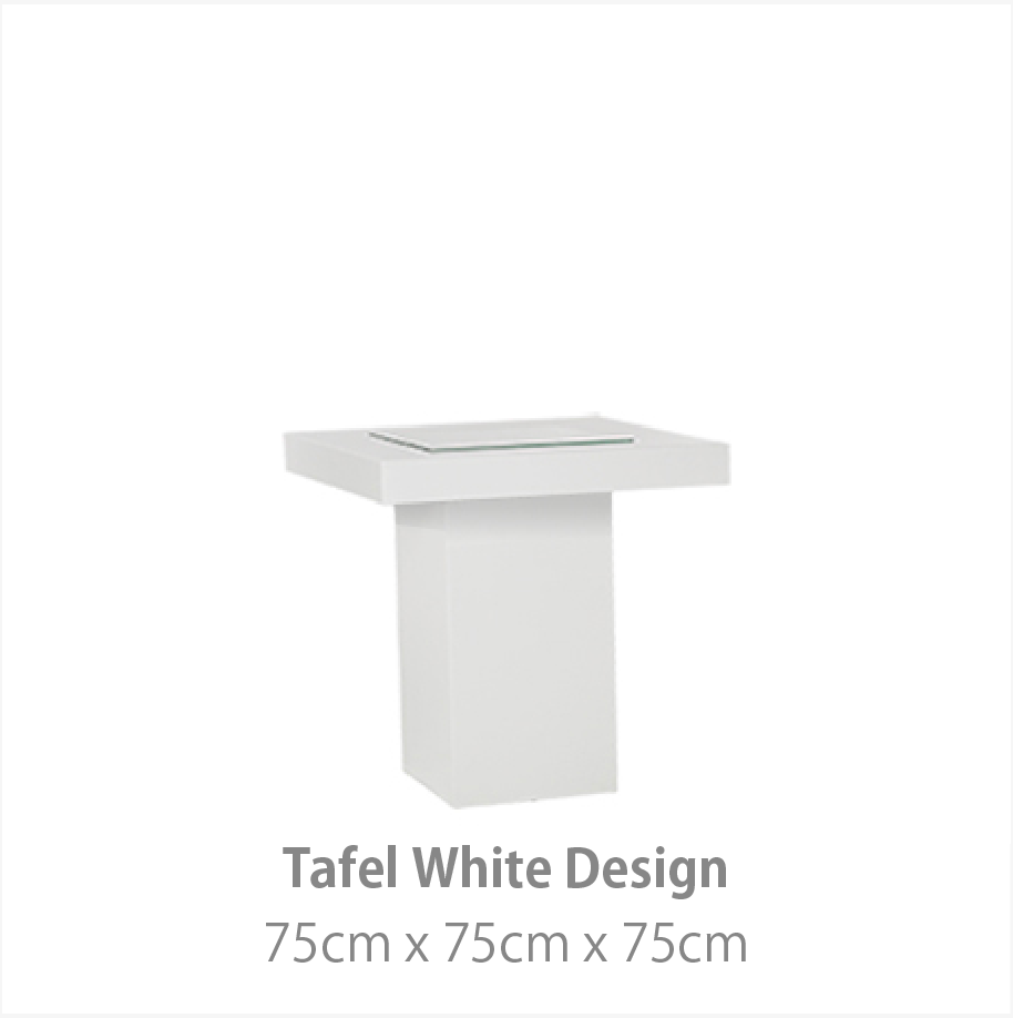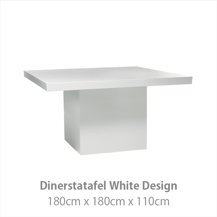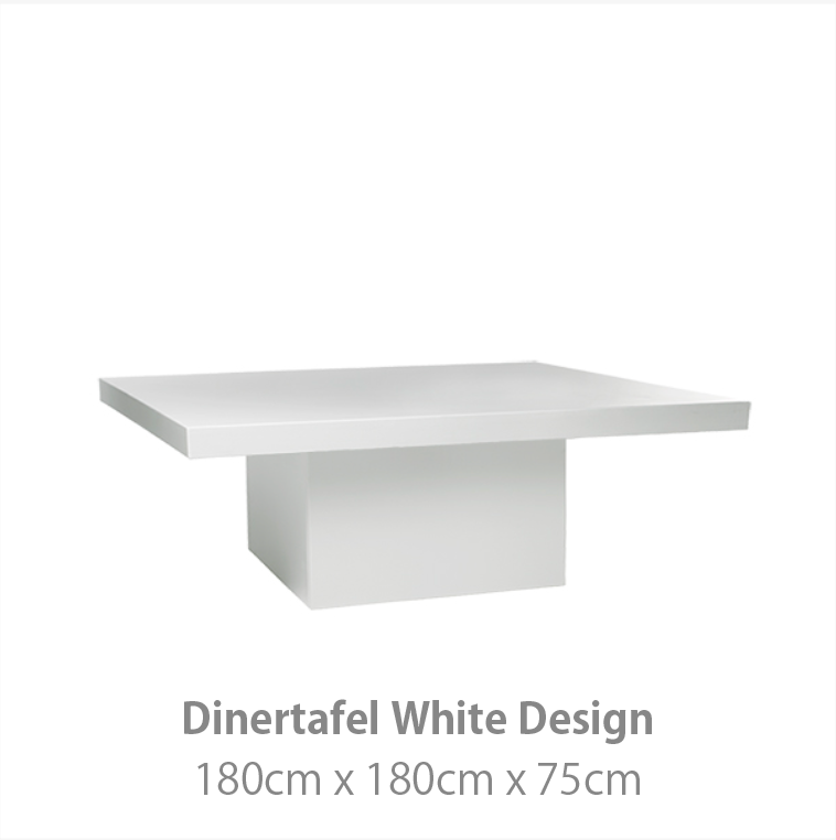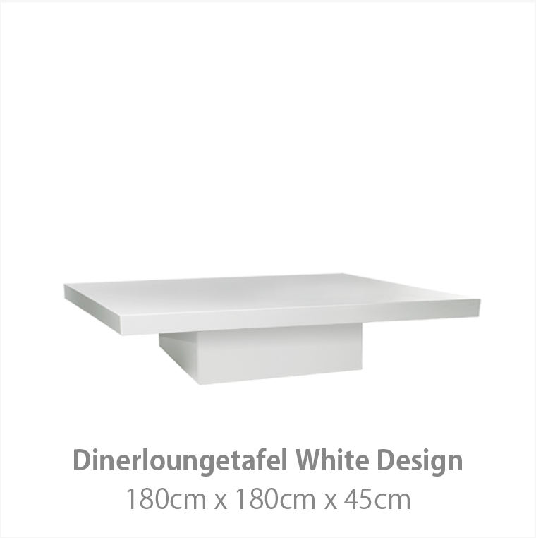 De White Design collectie geeft een moderne uitstraling aan uw evenement. Het witte interieur kenmerkt zich door strakke lijnen en de hoogwaardige hoogglans afwerking. Hiermee creëert u de basis van een moderne luxe stijl. Deze meubelstijl is zowel in een moderne als industriële omgeving uitstekend toepasbaar.